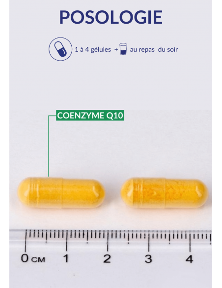 1 capsule daily with a glass of water during the meal. In case of chemotherapy, medical advice is required before considering coenzyme Q10.