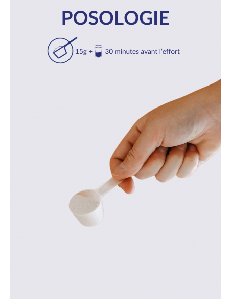 15g to mix in a 250ml glass of water or in a shaker. 30 minutes before exercise.