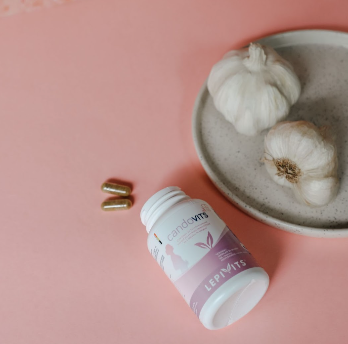 - Highly Titrated Plant Extracts: The carefully selected plant extracts in Candovits are titrated in allicin (garlic), oleuropein (olive), and carvacrol (oregano), working in synergy. The garlic extract, titrated in allicin, increases the body's antioxidant capacity. According to studies, the combined extract of olive and garlic titrated in allicin may contribute to maintaining microbial balance in the gut. Vitamin C contributes to the normal function of the immune system and helps reduce fatigue. According to a study, vitamin C combined with oregano could support intestinal immune defenses.
