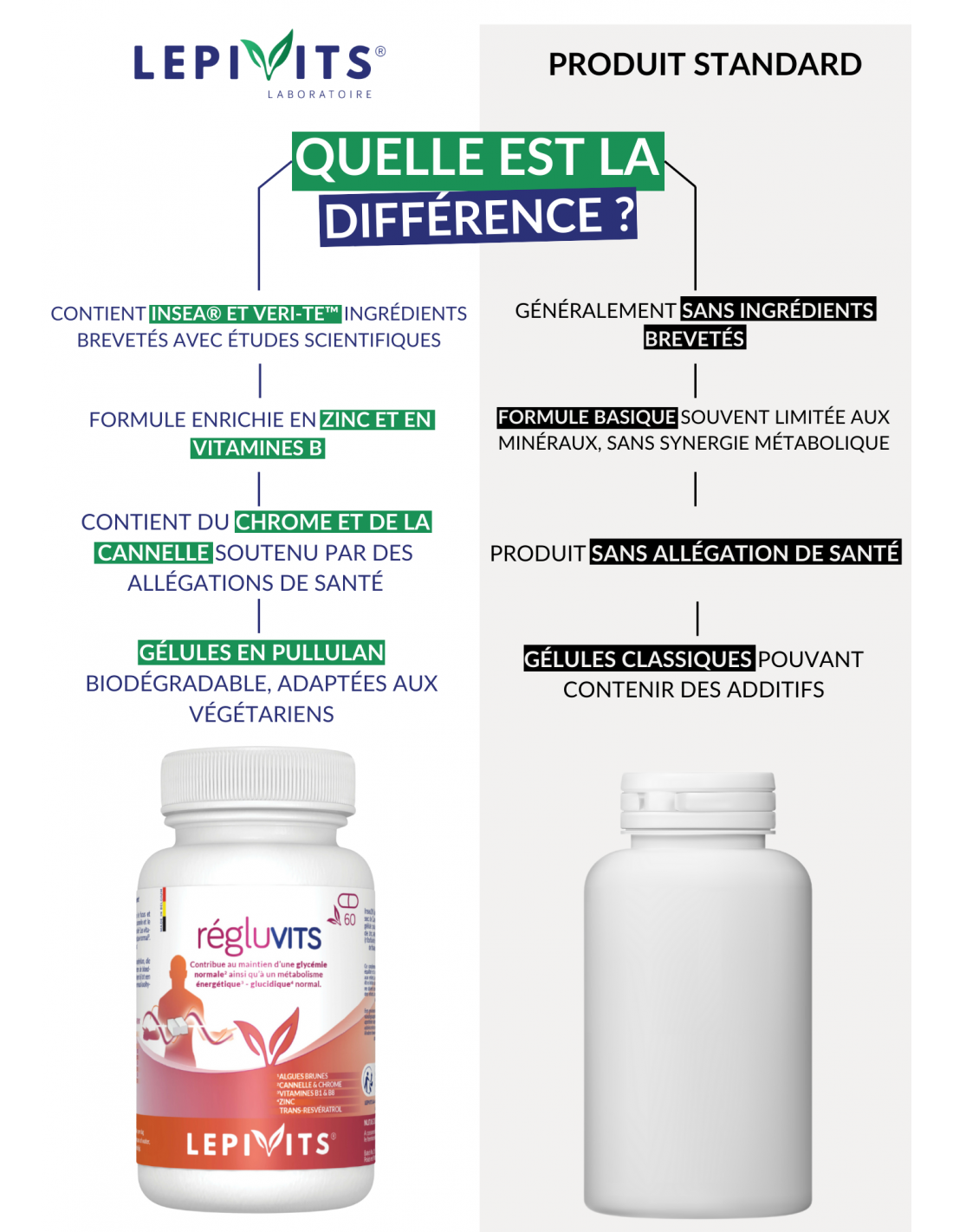- Ingrédients brevetés : Régluvits utilise des ingrédients comme Insea® et Veri-te™ qui ne sont pas seulement naturels, mais aussi soutenus par des études scientifiques. Ces ingrédients sont extraits de manière à préserver leurs composants actifs.