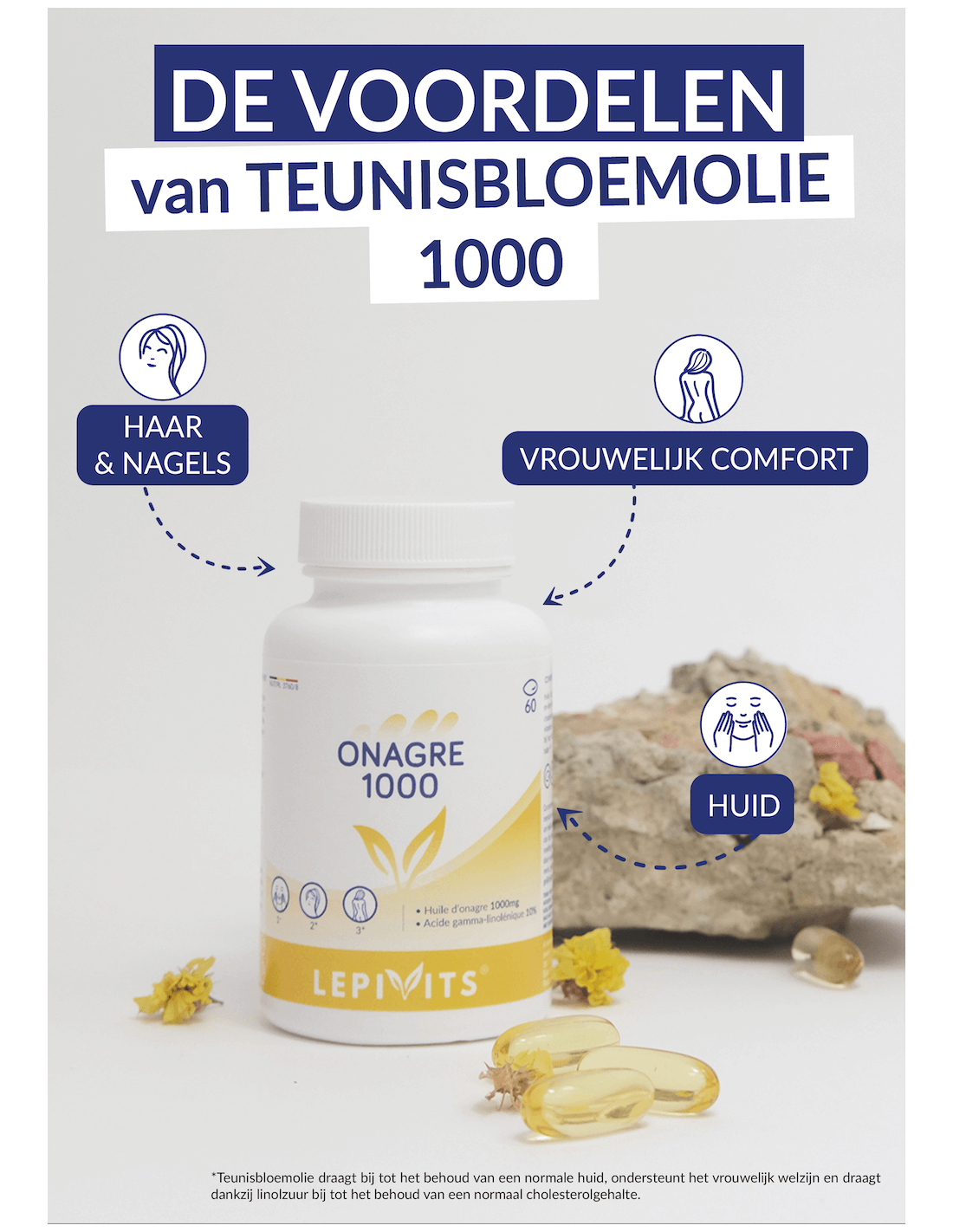 De Olie van Teunisbloem 1000mg is een opmerkelijke natuurlijke bron van essentiële vetzuren, speciaal geformuleerd om uw dagelijkse welzijn te verrijken. Dankzij de extractie door koude eerste persing, behoudt deze olie al zijn heilzame eigenschappen, en biedt een ongeëvenaarde rijkdom aan gamma-linoleenzuur (GLA) en linolzuur. Deze componenten dragen bij aan het behoud van een normale huid, vrouwelijk welzijn en het behoud van een normaal cholesterolgehalte.