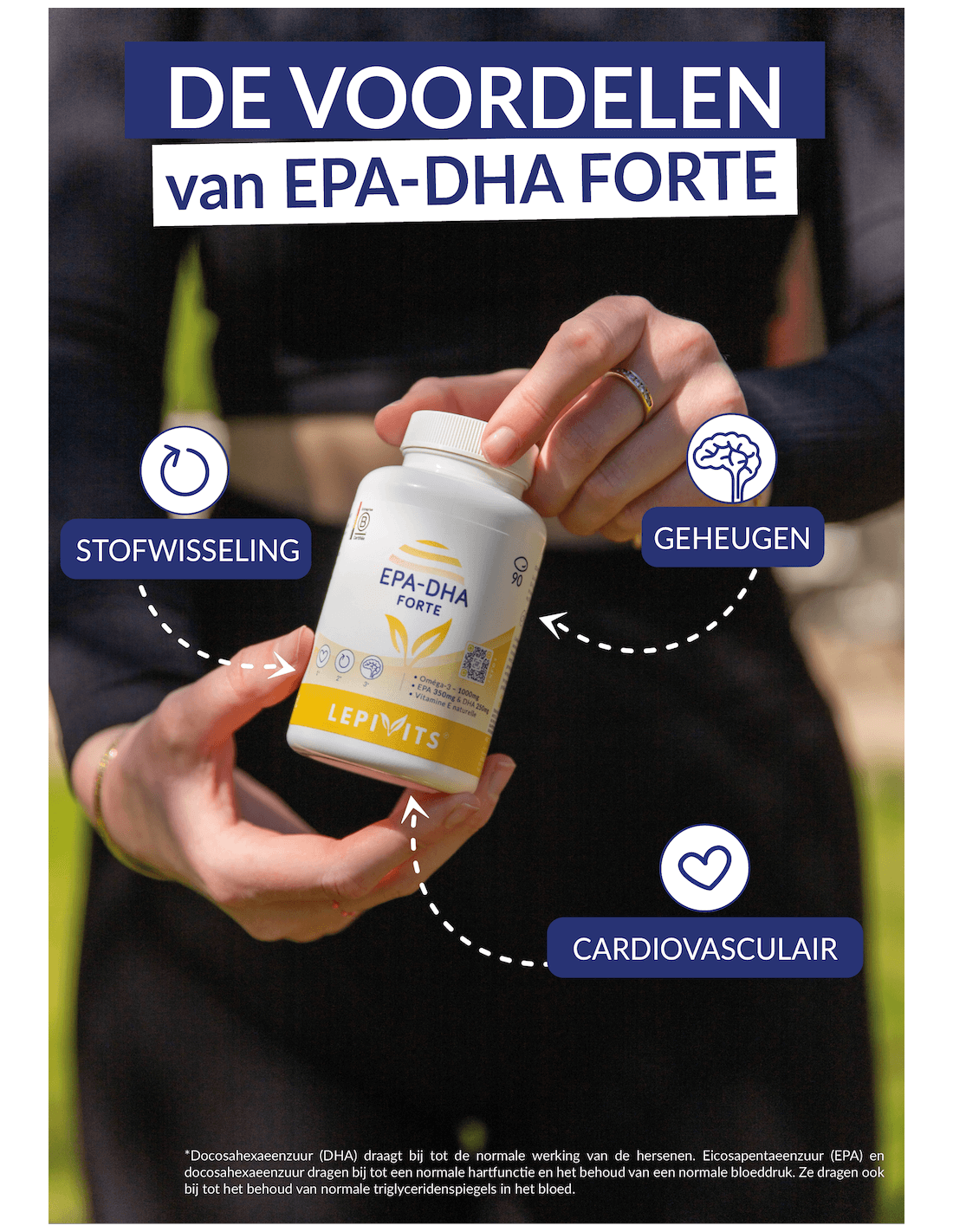 Eicosapentaeenzuur (EPA) en docosahexaeenzuur (DHA) dragen bij tot de instandhouding van normale triglyceridengehalten in het bloed.