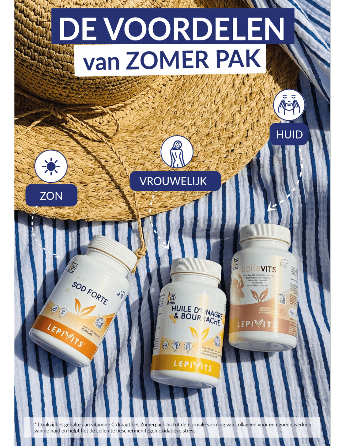 De zomer is hier, met zonneschijn, strand en lange dagen buiten. Om ten volle van dit seizoen te genieten en tegelijkertijd goed voor je huid te zorgen, presenteren wij ons Zomer Pakket, een combinatie van drie essentiële voedingssupplementen die ontworpen zijn om je huid te hydrateren, te behouden en te revitaliseren. Ontdek hoe de actieve ingrediënten in teunisbloem- en bernagieolie, Collavits, en SOD Forte samenwerken om je huid de hele zomer gezond te houden.