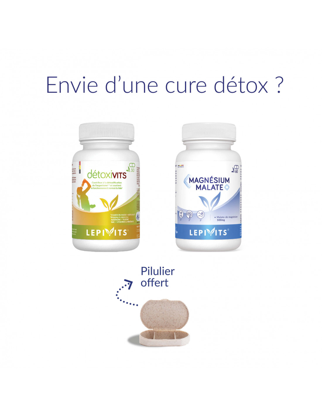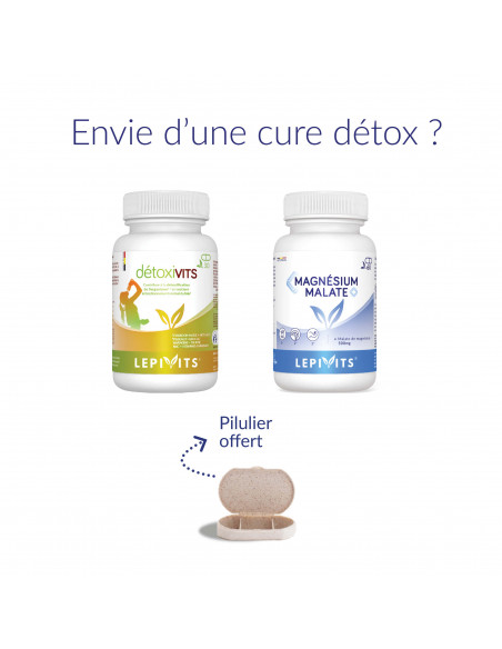 Wat als je je lichaam een welverdiende pauze kon geven in een wereld waar stress, vervuiling en voedingsoverschotten onze gezondheid belasten? De LEPIVITS Detox Pack, die de voordelen van Detoxivits en Magnesium Malaat combineert, is ontworpen om deze essentiële processen te ondersteunen. Of het nu na een periode van overdaad is (feestdagen, langdurige stress) of als preventieve maatregel, het helpt je lichaam zijn natuurlijke balans te herstellen terwijl het vermoeidheid en onevenwichtigheden door toxineophoping bestrijdt. Met gepatenteerde actieve ingrediënten, een clean-label formulering en optimale biologische beschikbaarheid is deze pack ideaal voor iedereen die een effectieve, veilige en gezondheidsbewuste detoxkuur zoekt.