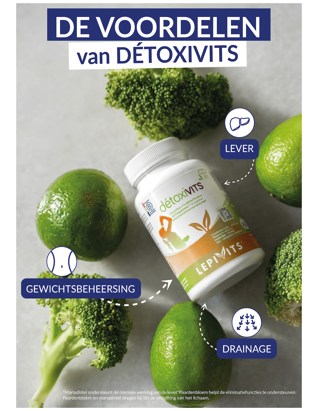 Detoxivits is een nutra-complex rijk aan natuurlijke actieve principes die zijn geselecteerd vanwege hun vermogen om het lichaam te ondersteunen in zijn ontgiftingsproces. Elke dag worden we overspoeld door gifstoffen - vervuiling, bewerkt voedsel, stress. Ons lichaam heeft inderdaad mechanismen om bepaalde xenobiotica aan te kunnen, maar de opeenhoping kan wegen op onze gezondheid. Het hoofddoel van detoxen is om het lichaam te ondersteunen bij het elimineren van opgehoopte gifstoffen. Een detox doen, onder begeleiding van een gezondheidsprofessional, kan bijdragen aan het verbeteren van de leverfunctie, het bevorderen van een betere spijsvertering, het verhogen van energieniveaus en het verbeteren van mentale helderheid.[1] Het stelt het lichaam in staat zichzelf te zuiveren om efficiënter te functioneren.